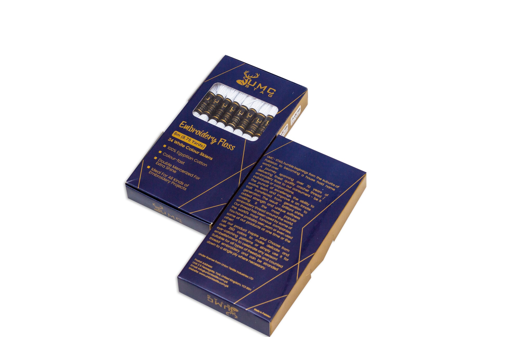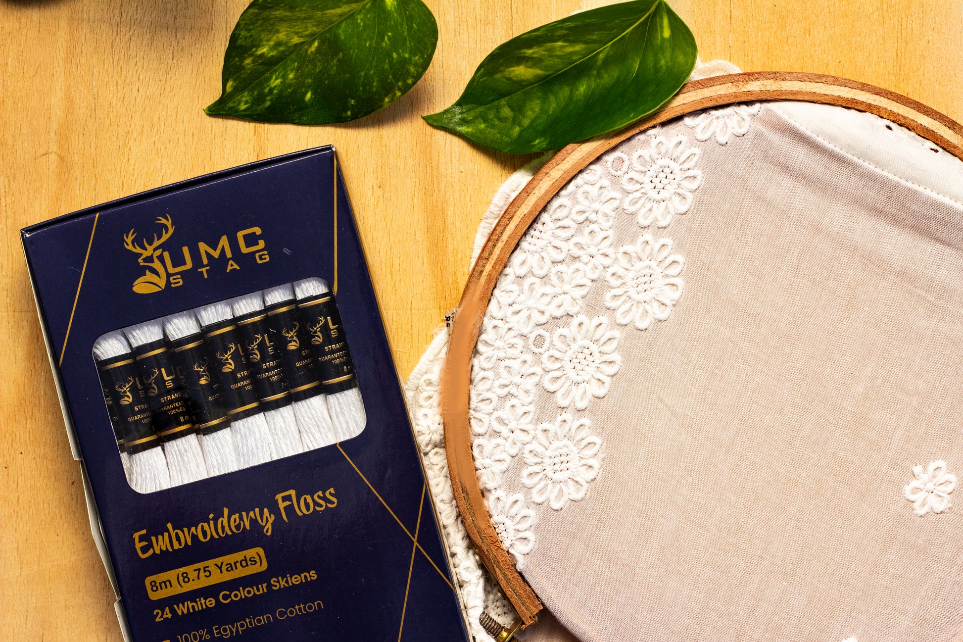 Looking for high-quality embroidery thread in a perfectly white colour? Well, we got you. More than seven decades of operational distinction, proficiency & expertise in the textile business. This translates into an essential ability to design, produce & satisfy customers. Principles setting us apart from our competitors are perseverance, dedication and customer satisfaction that we believe in. Enduring growth since inception, it is now the fastest-growing thread manufacturing company in the world. Influencing individuals, touching lives and getting stronger every day. Furthermore, the notion of growth translates to perfection that our product possesses. The result is matchless style and quality in every thread that we produce. The quality of our brand UMC STAG is at the same level as of the bigger brands in the industry. UMC-STAG providing finest quality crochet thread that is BSCI certified, made of supreme Egyptian cotton, and provides long-lasting finish without pilling. Each Skein is about 8.75 yards long and the length of each floss is composed of six individual strands, allowing you to adjust the thickness of your stitch by using a different number of strands. The vibrant coloured thread is durable enough to create all kinds of stitching and craft projects, like embroidery, friendship bracelet, hair wraps, cross-stitch, tassels, DIY projects for kids, children's crafts or making clothing decoration.