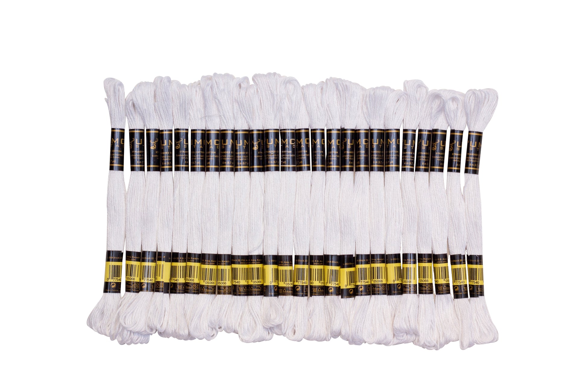 UMC STAG 24 Pieces White Colour Premium Embroidery Thread | 100% Egyptian Cotton Skeins | Cross Stitch Embroidery Floss | OEKO TEX Stranded Cotton |